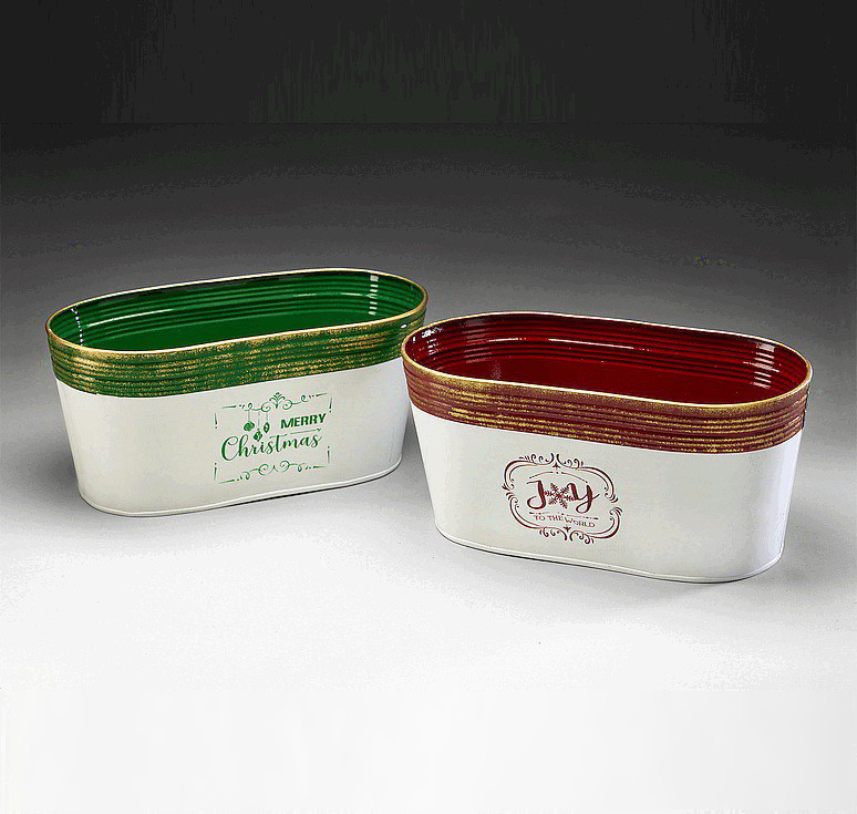 Galvanized Oval Metal Christmas Container; 2 Assorted Designs